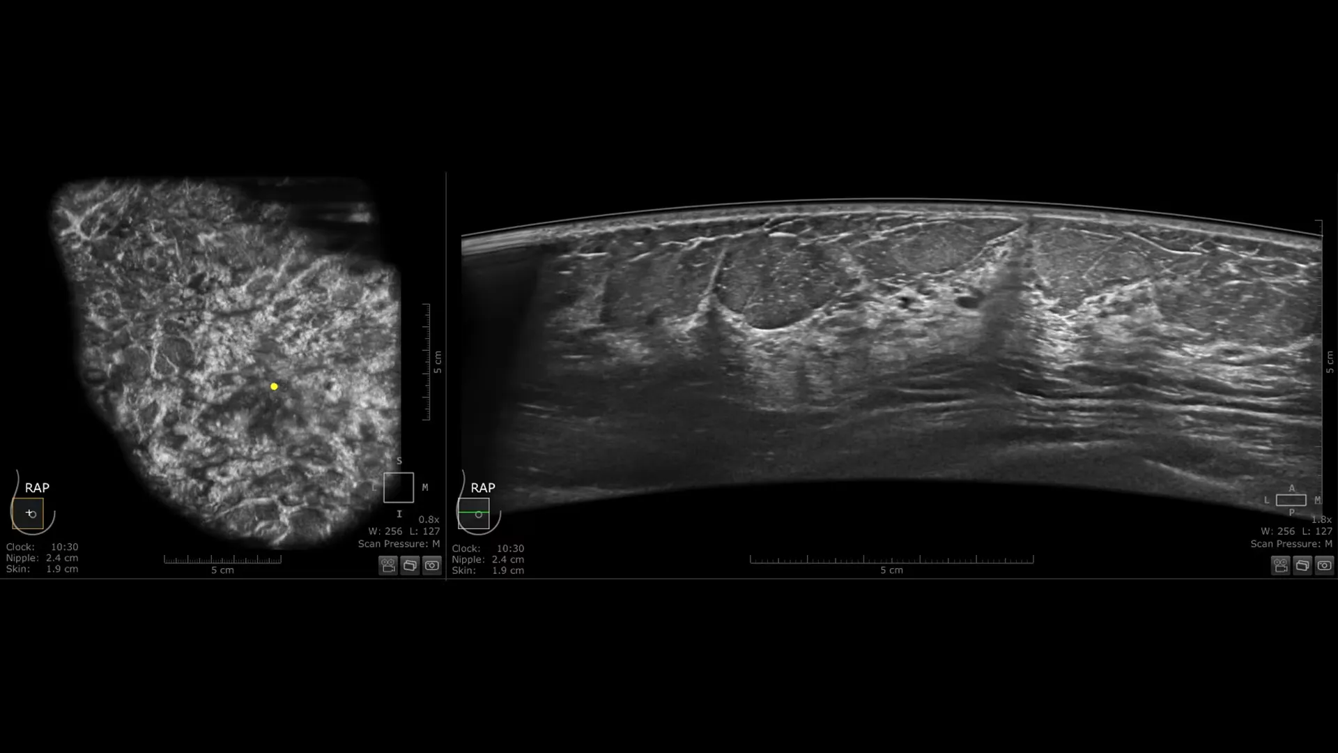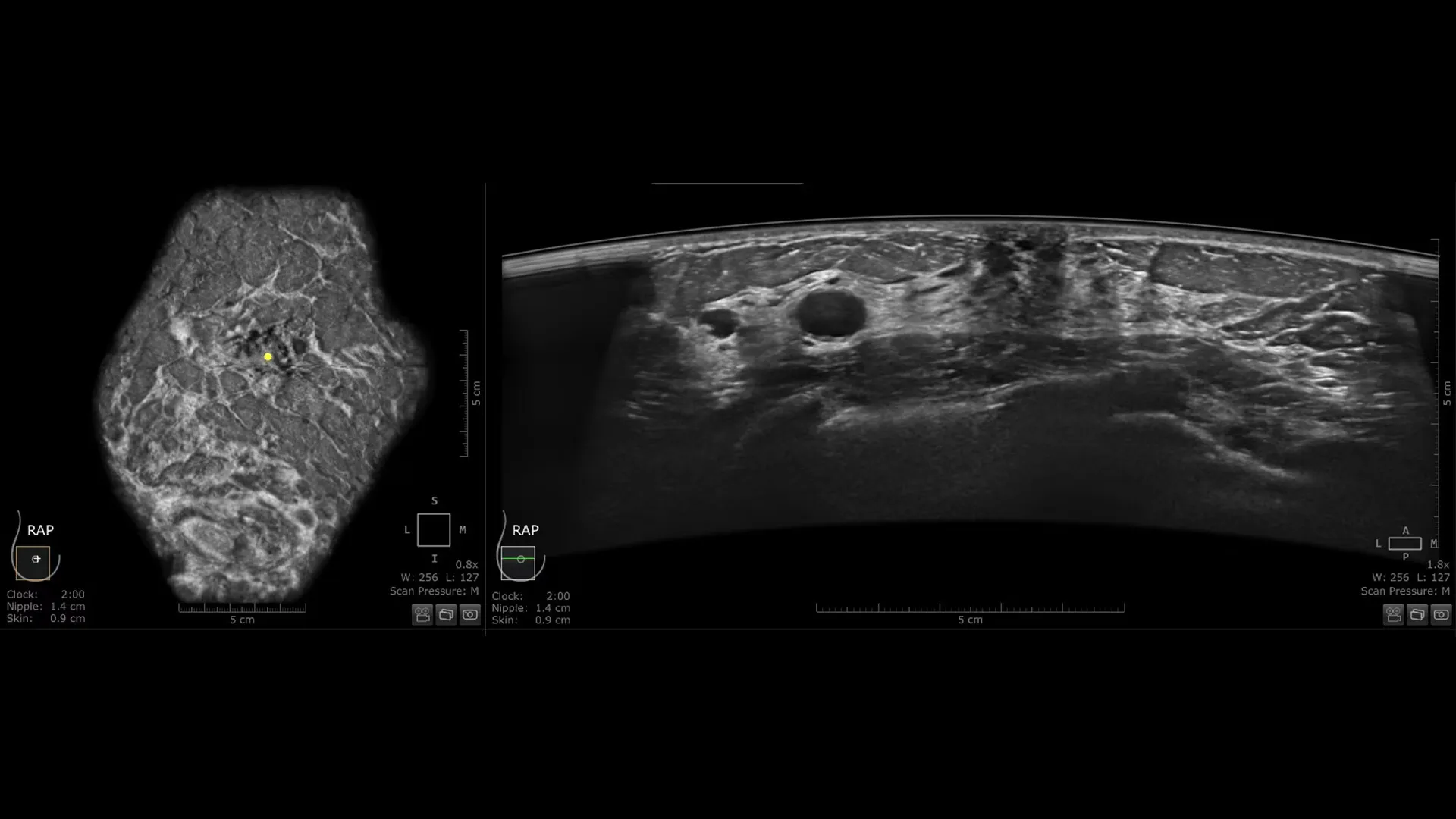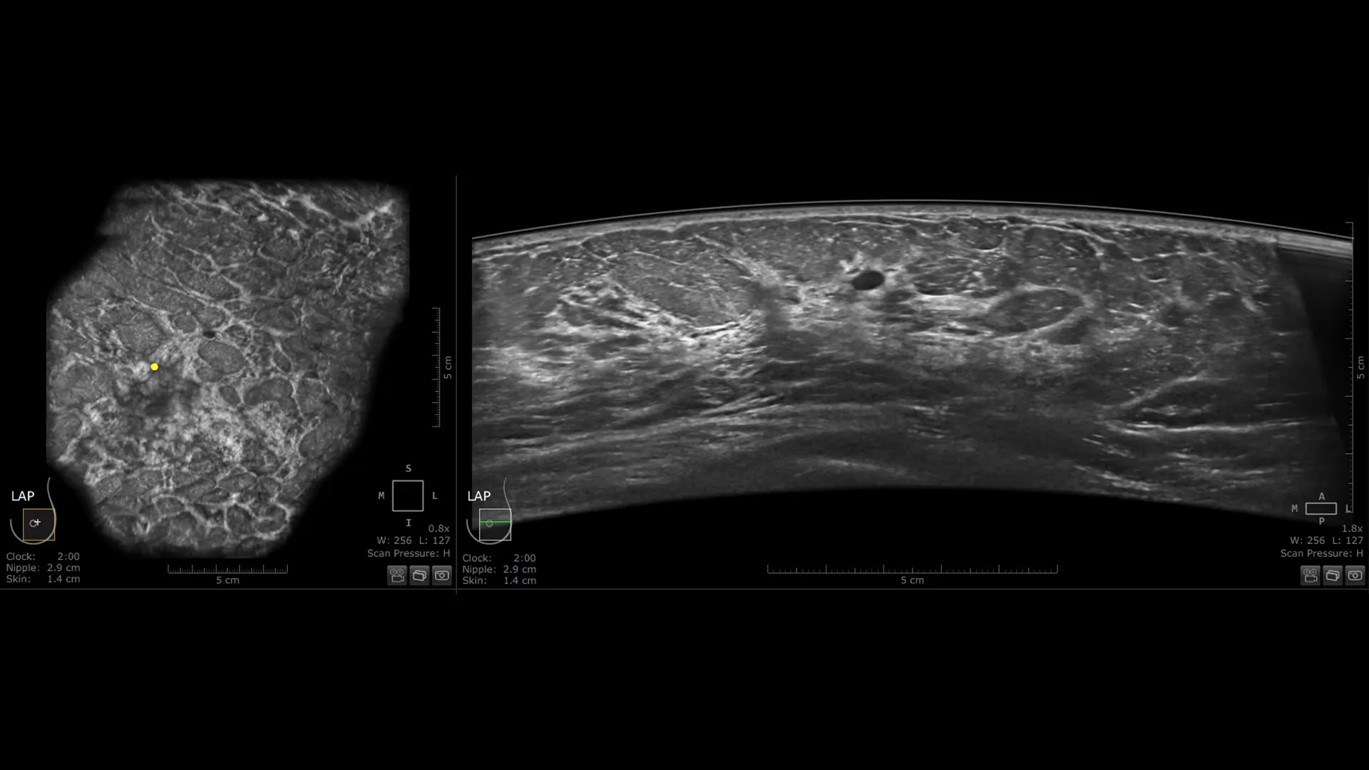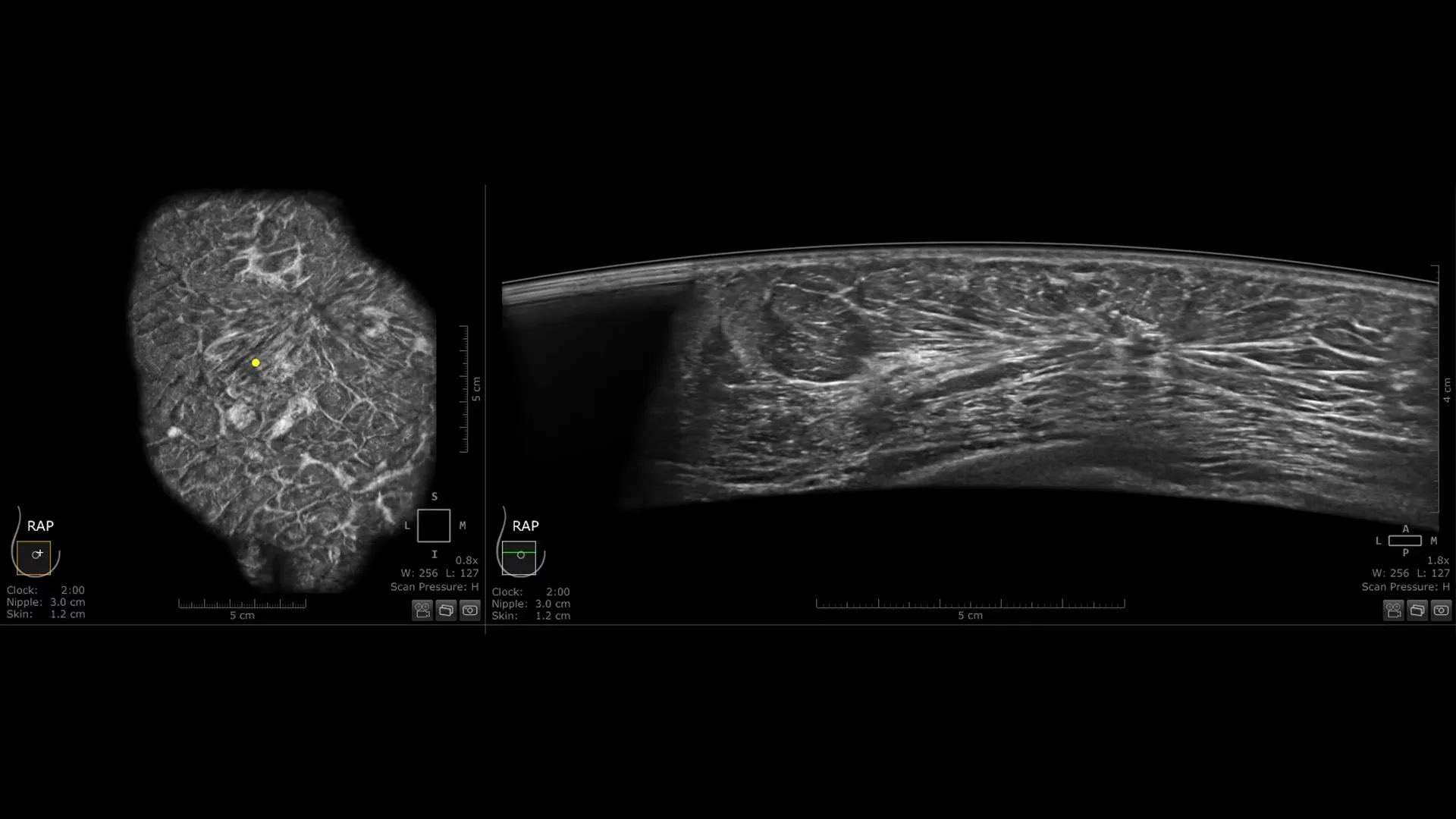 - Automatsko prepoznavanje bradavice (Auto Nipple Detection) automatski postavlja marker bradavice za veću dosljednost i brže preglede